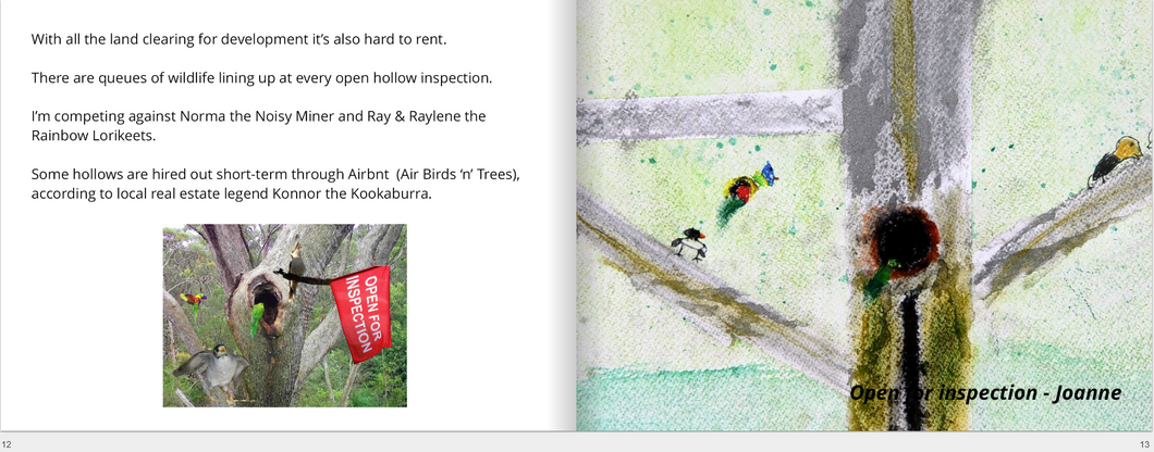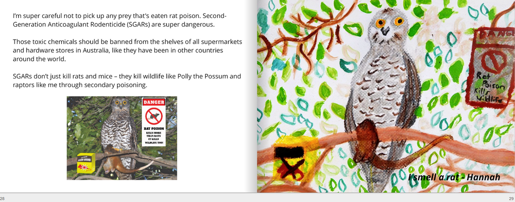 Woo Hoo! I'm excited to announce the release of our third limited-edition hardcopy book. It's 20cm x 15cm landscape, with 54 high-gloss pages and over 60 full-colour images. It's a community collaboration based on our highly commended story from The Australian Wildlife Society 2024 wildlife fiction short story competition and the photography of Michael Bianchino, illustrated by Macquarie University Junior Science Academy students, with artists Melony Smirniotis & Jo Goodchild, with foreword by acclaimed horticulturist and broadcasting personality Graham Ross AM VMM FAIH, and afterword by Peggy McDonald OAM CF the founder of Higher Ground Raptors. $10 from each book sold fundraised for Sydney Wildlife Rescue and BirdLife Australia's Powerful Owl Project - What a hoot! Proudly printed in Australia - price includes a complimentary bookmark and two postcards (while stocks last) and domestic postage.